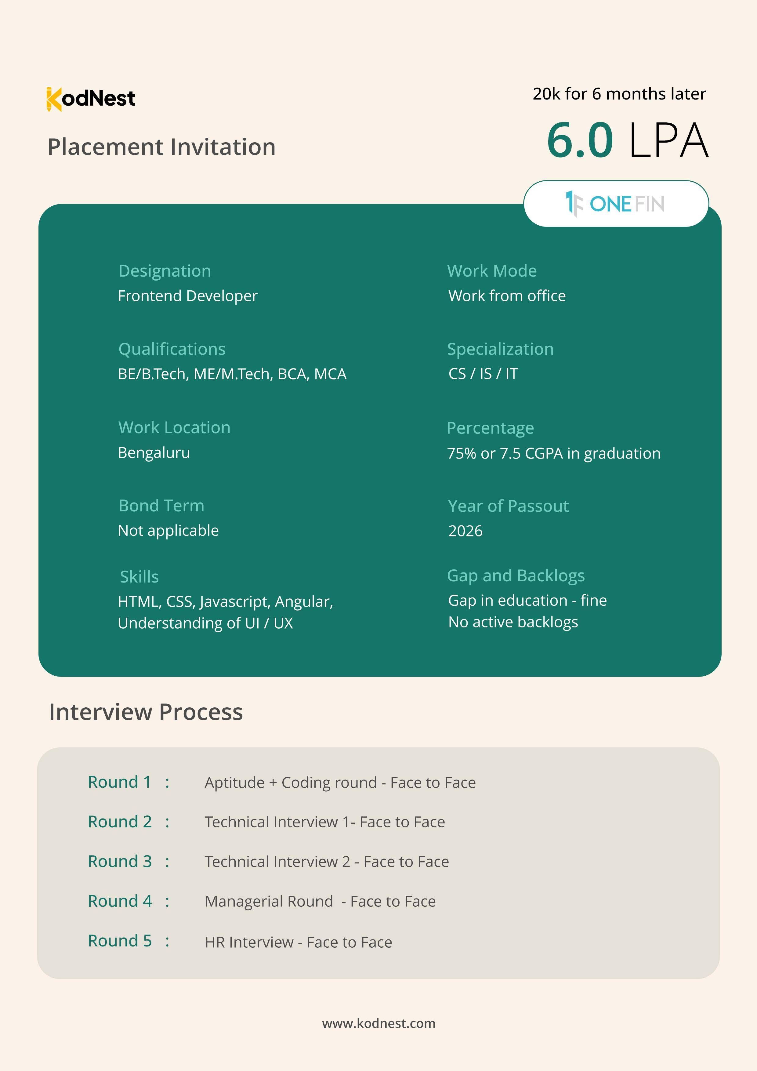 KodNest Requirement - OneFin(Frontend Developer)
